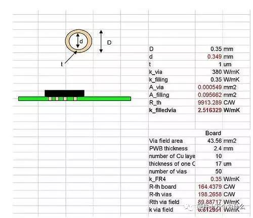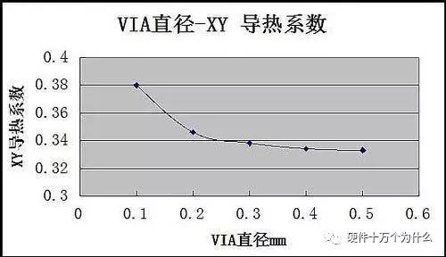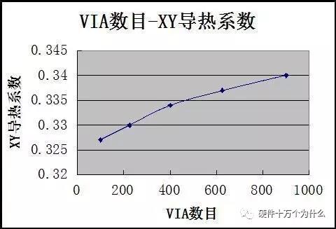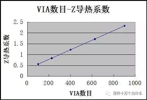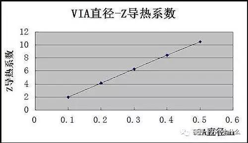 当然手工也可以计算(并联导热): 不过既然有了软件,我们可以利用软件快速的计算出各种组合的变化: 1 过孔的直径影响(其他参数不变) (为什么是线性呢?想想......) (也是线性。。) 3 过孔的铜箔厚度影响(其他参数不变)
