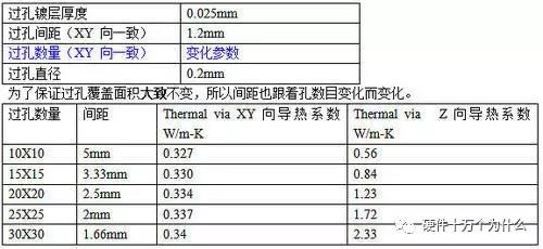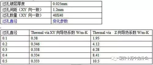 加热过孔的目的就是为了增强Z向导热的能力,让发热面的元件快速冷却,所以,结合以上的数据可以看出,增加孔径,增加镀层厚度,增加过孔数目都是能显著强化Z向的导热的。